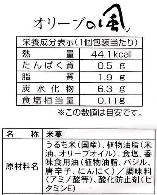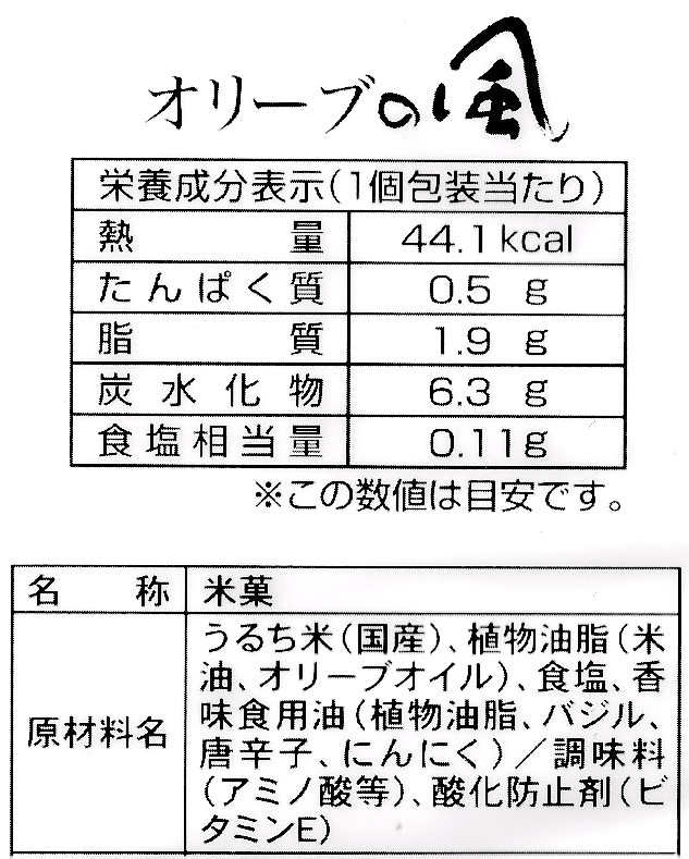 「オリーブの風」の個包装。ご家庭で、ちょっとしたお使い物としてご利用いただけます。