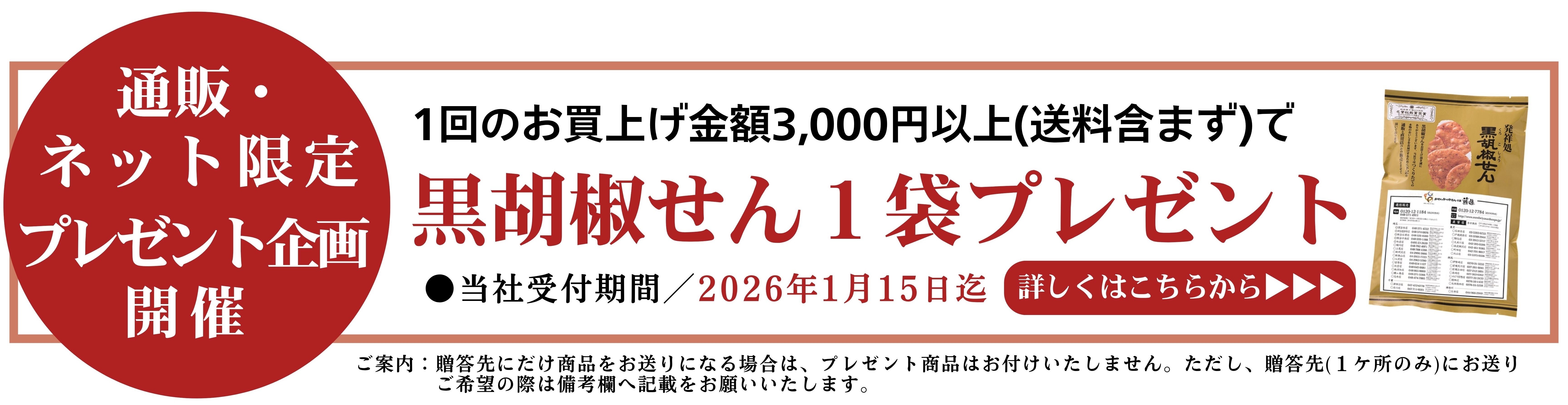 - 【通販限定企画】『ご家庭用黒胡椒せん』プレゼントキャンペーンスタート!