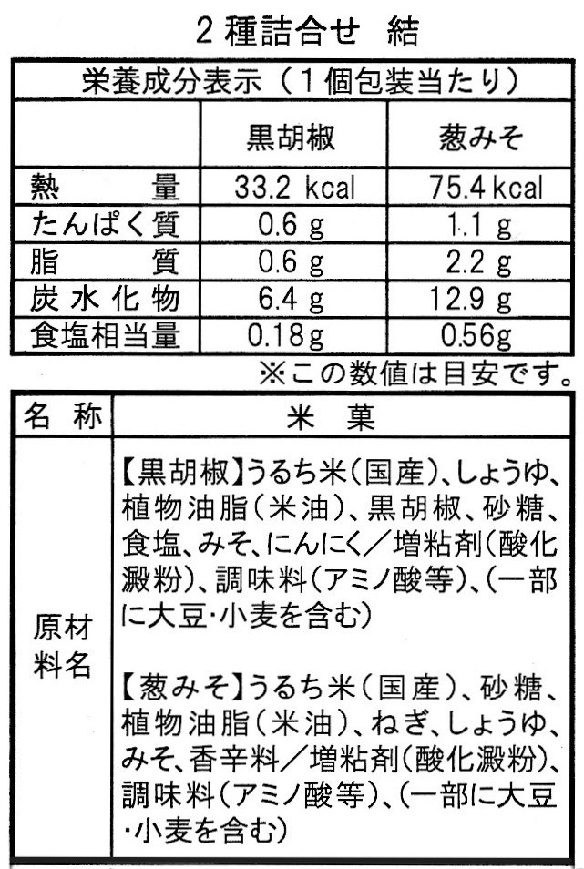 種類:黒胡椒せん 6枚(2枚入×3袋)・葱みそせん 2枚