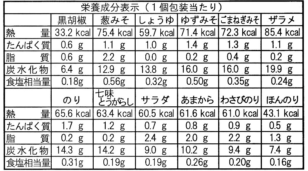 種類/黒胡椒せん 20枚(2枚×10袋)・ 葱みそせん 8枚(1枚×8袋)