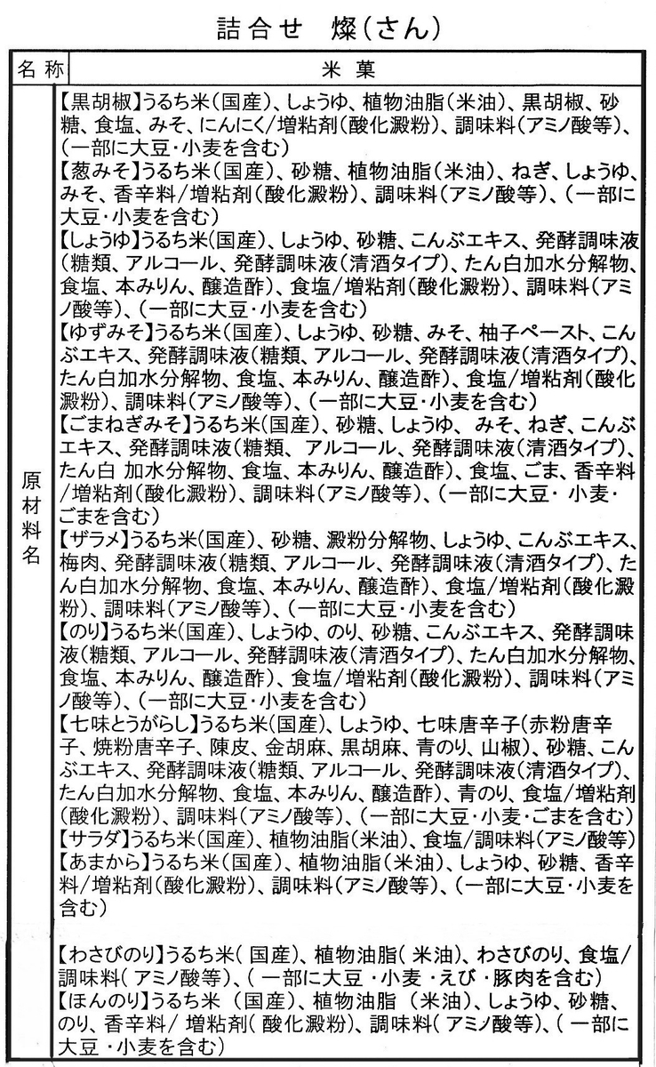 黒胡椒せん、葱みそせんに「六佳煎」「米香味」を合わせた、味のバリエーション豊かな詰め合せです。