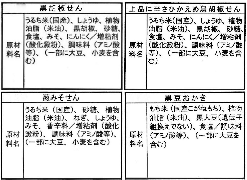 黒胡椒せん 辛さを控えめ黒胡椒せん 葱みそせん 黒豆おかき
