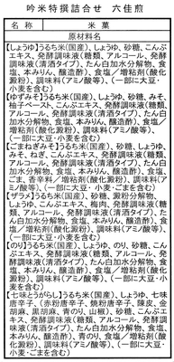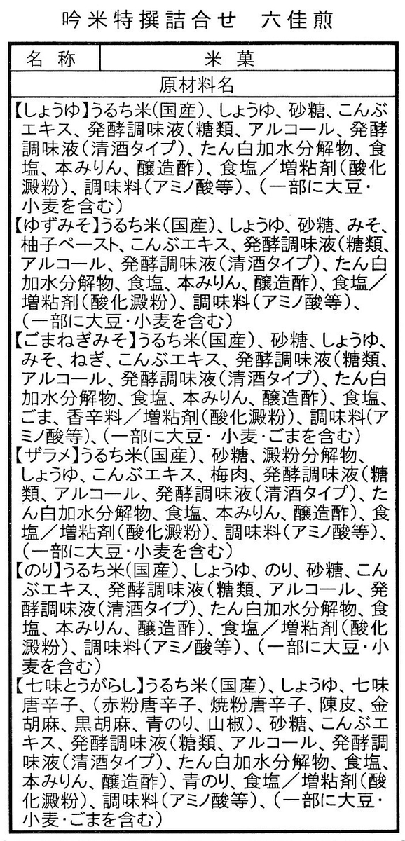 吟米特撰 六佳煎(しょうゆ・ゆずみそ各2枚・ごま葱みそ・七味とうがらし・ザラメ・のり各1枚)